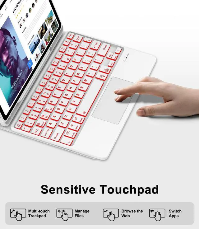 ^^ All-round Protection & Heat DissipationThe 10.9 inch case backlit keyboard for samsung tablet is made of premium PU leather and silicone inner shell, it provides all-round protection for your Pad from the back and front. Prevent scratches, bumps or dents and protect your tablet from all kinds of drops, shocks, scratches and dust. Honeycomb grid pattern inner padding improves heat dissipation by 80% compared to other galaxy tablet protective cases.