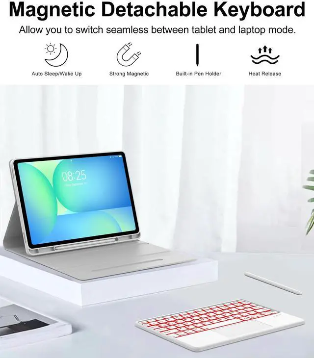 • Detachable Magnetic Adsorption KeyboardThe for samsung tab s10 lite 2025 case keyboard's illuminated keys