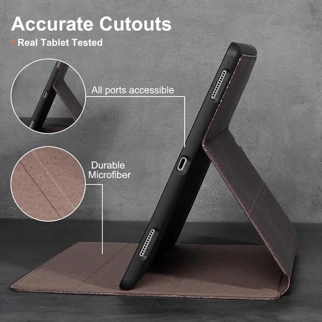 • [MATERIAL&CRAFT] - Exterior is genuine leather protecting camera and tablet body with inner super-fibre lining protecting screen and TPU full package soft inner shell. Full access to all features (Cameras, Speaker, Ports and Buttons); each cutout is tested with relevant tablet before package to make sure working perfectly