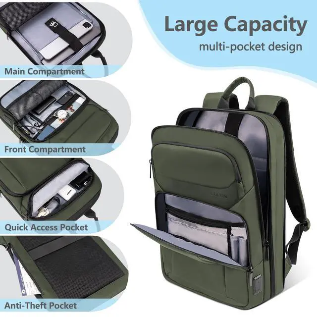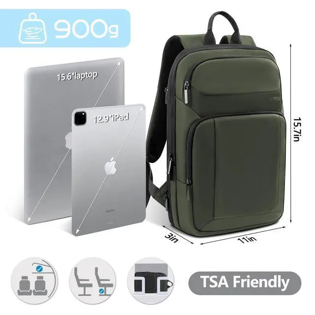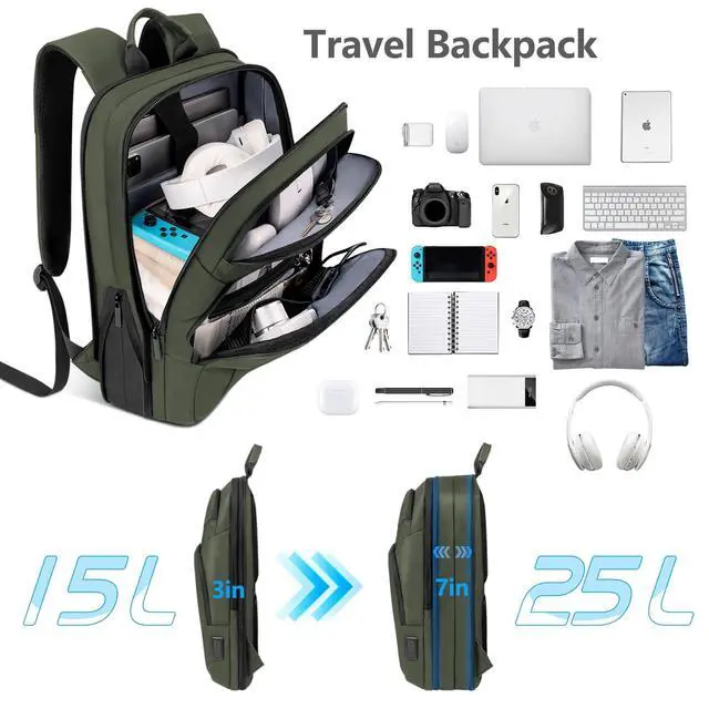 Expandable & Large CapacityThis travel laptop backpack for men fits most 15.6 inch laptops. The work backpack for men weigh only 900g (2 lbs), The computer backpack capacity can be expanded from 15 liters to 25 liters. The standard size 15.7 x 11 x 3 inch. Ideal for work, commute or college. The expanded size 15.7 x 11 x 7 inch. Ideal for travel, vacation or business. This casual lightweight backpack suitable for any occasion. ^^ USB Charging PortThis business backpack for men features a built-in USB charging port, allowing you to conveniently charge your devices on the goperfect for business trips or vacations (power bank is not included).