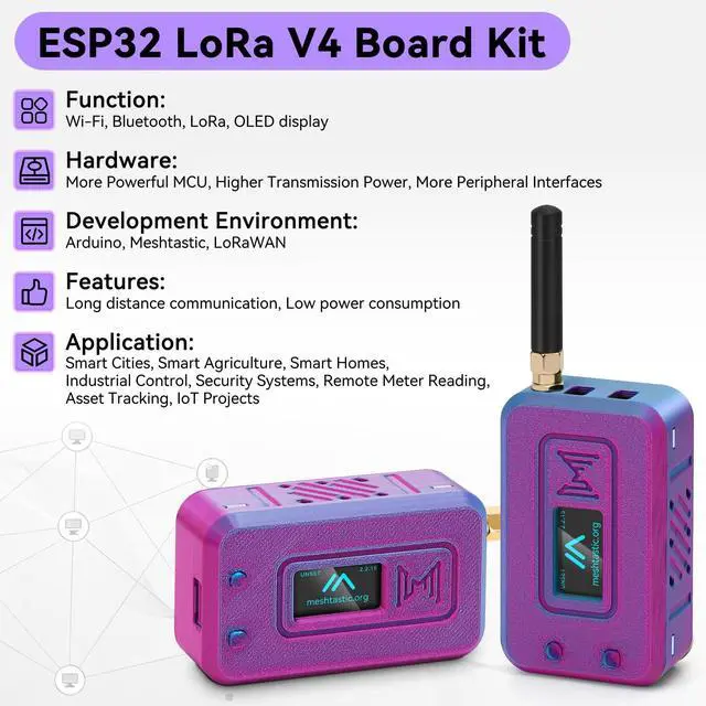 Enhanced Protection: The included N35 iridescent purple shell is specifically designed to house your LoRa V4/V3 ESP32 development board, battery, and antennas. With precise cutouts for the display, buttons, charging port, and antenna, this case ensures a snug fit while offering robust protection. Durable and lightweight, its perfect for field deployments or DIY projects.