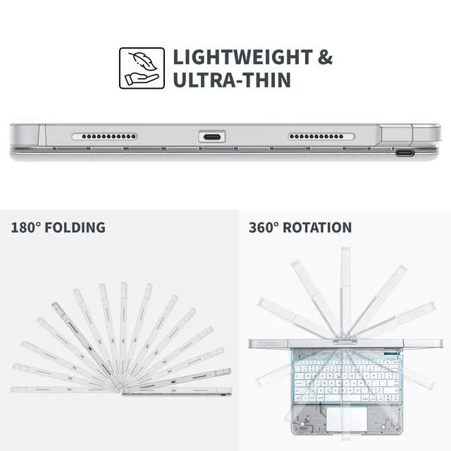 Tech-savvy Design: The keyboard panel features a transparent window design, perfectly showcasing the three-dimensional chips and circuit textures. By integrating sci-fi aesthetics into practical scenarios, it creates a futuristic tactile experience at your fingertips. ^^ 360 Rotating Hinge + 180 Full