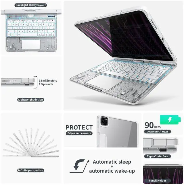 Backlight: Features 7-color RGB backlighting (3 brightness levels) and scissor-switch keys for quiet, responsive typing. Intelligent sleep/wake sync automatically activates when opening/closing the tablet, ensuring effortless power management. ^^ Multi-touch Trackpad +