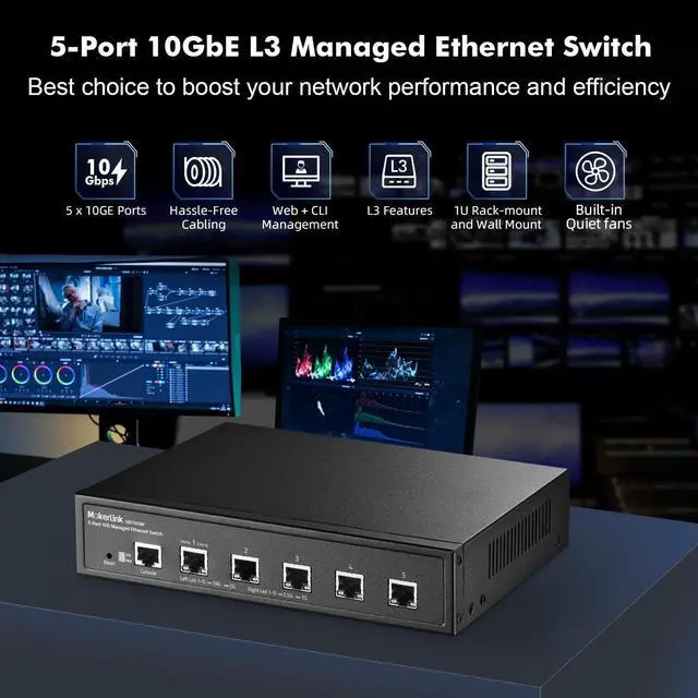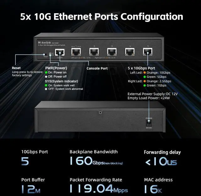 Ports: The network switch has 5 x 10Gbps ethernet ports, every port support auto-adaptive 10G/5G/ 2.5G /1000M/100M data rate, supports auto-flip and wire-speed forwarding ^^