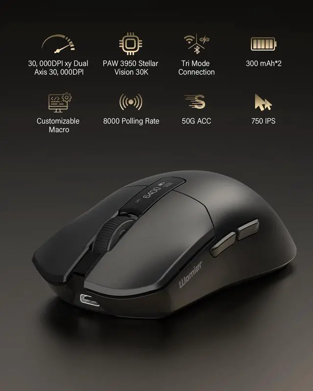 Offering sensitivity up to 30, 000 DPI, this gaming mouse provides the elite cursor control required for clutch plays in FPS titles and executing meticulous edits in creative software. ^^ OLED Info Display & Programmable ButtonsStay informed with the integrated OLED screen, displaying real-time DPI, connection mode, and battery status at a glance. Take full command by remapping all buttons and creating powerful macros with the included software, giving you a customized edge for any game or workflow. ^^ Versatile Tri-Mode ConnectivityConnect your way with high-performance 2.4G, flexible Bluetooth, and a lag-free wired option.