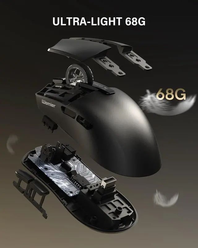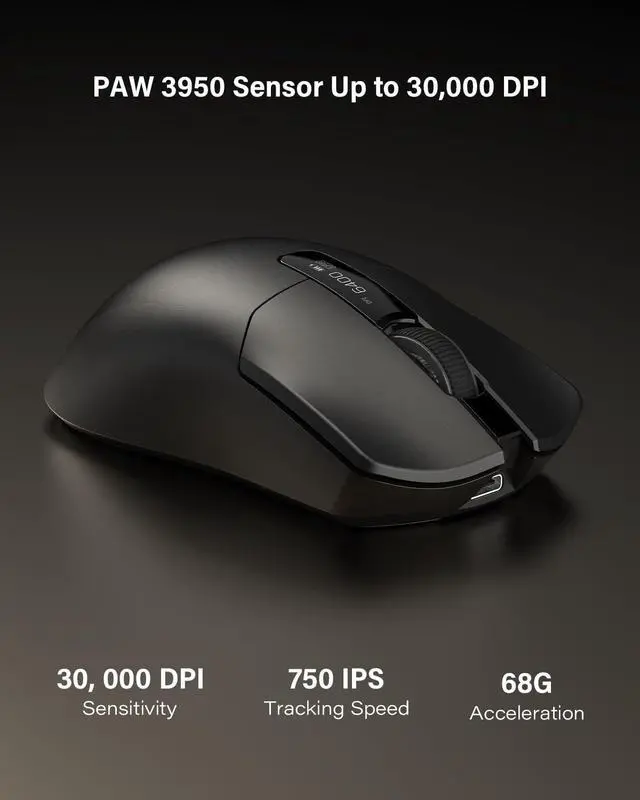 Never-Ending Power SystemThis wireless gaming mouse features a revolutionary hot-swappable battery design. Includes two 300mAh batterieswhen one runs low, simply swap it for the fully charged spare in seconds. Experience true wireless freedom with zero downtime, ensuring you're always powered for victory. ^^ 8000Hz Polling Rate & 68g LightweightDominate the competition with a hyper-responsive 8000Hz polling rate (wired/ 2.4G ) for near-instantaneous input. The featherlight 68g design enables lightning-fast flicks and precise micro-adjustments, reducing fatigue during marathon gaming sessions so you can maintain peak performance. ^^ PRO-GRADE PAW3950 SENSORExperience flawless, pixel-perfect tracking with the advanced PAW3950 optical sensor.