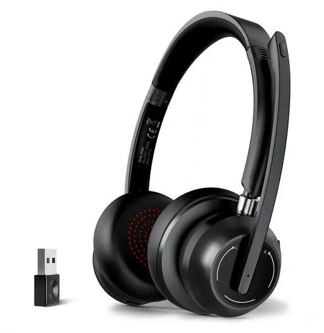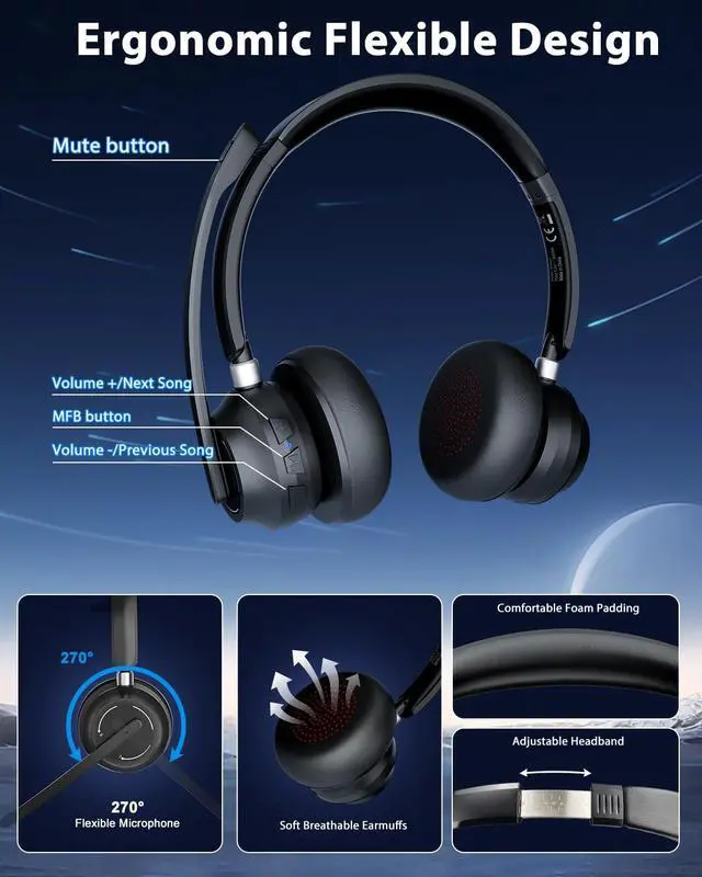 Max move freely range: 40ft) ^^ All-Day Comfort & Lightweight Design Designed for long-term wear, these headphones feature soft, breathable protein memory foam ear cups to prevent overheating and sweating during long calls. The adjustable headband fits most head sizes, and at just 5.09 oz, lightweight and portable, making them ideal for all-day wear. ^^ 3 Connection Modes for Flexibility & Mute Mic Wireless Headset with Mic for