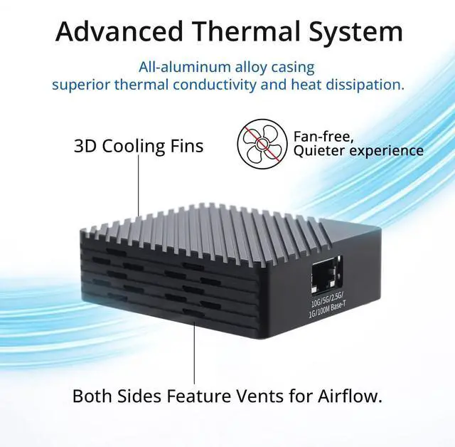 ^^ Intel-Powered Stability: Powered by the Latest Marvell AQC113C Chip. It prevents speed drops under heavy load, ensuring reliable data transmission for your tasks. Features a Intel JHL7440 Thunderbolt controller, engineered for a stable connection. ^^ Silent and
