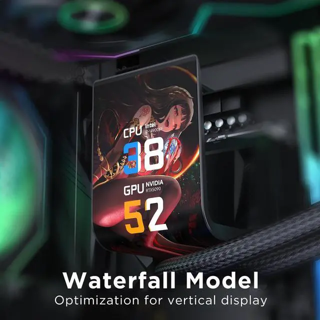 [2K 6.67 -Inch Curved LCD Screen]Equipped with a 2K rotatable 6.67 -inch AMOLED 3D curved screen, featuring 2K resolution (2400*1080). Adopting a magnetic adsorption design, it supports 360 rotation (with four adjustable angles) and offers easy installation, enabling multi-angle display without blind spotsperfect for showcasing customized content or hardware data. ^^ [Customized Display Content]Supports importing videos and images as backgrounds, which, combined with the curved screen, achieves a 3D effect. It offers multiple customized design options covering video import, data display, and visualization customization. Equipped with customized R&D software, it features intuitive and smooth operation along with a clear interface layout, meeting diverse personalized needs.