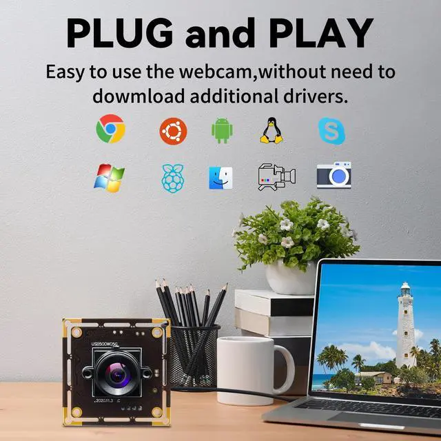 ^^ High Speed Data TransmissionFeaturing a USB 2.0 high speed interface, it enables rapid and efficient data transfer. Additionally, its support for the OTG protocol broadens compatibility with a wide range of devices, ensuring seamless connectivity. ^^ Plug and Play ConvenienceThis camera offers hassle free operation as it requires no additional drivers or software. It is fully compatible with WinXP and above, Linux, Mac - OS X 10.4. 8 and later versions, Wince, and Android 4.0 and above systems, providing easy integration for users. ^^ Wide Range of ApplicationsIdeal for Raspberry Pi and other embedded computer projects, including ATM, smart express cabinets, industrial machinery, cash dispensers, web conferences, robots, and more.
