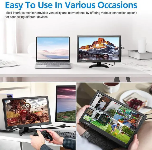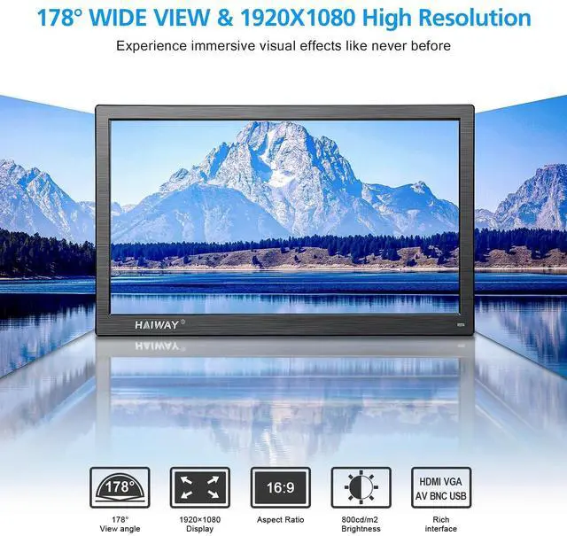 HDMI Monitor: Haiway 15.6 inch monitor with 1920x1080 high resolution. 178 viewing angles, 60Hz and high brightness which will show clear accurate images. It is indispensable in both daily living and professional endeavors.