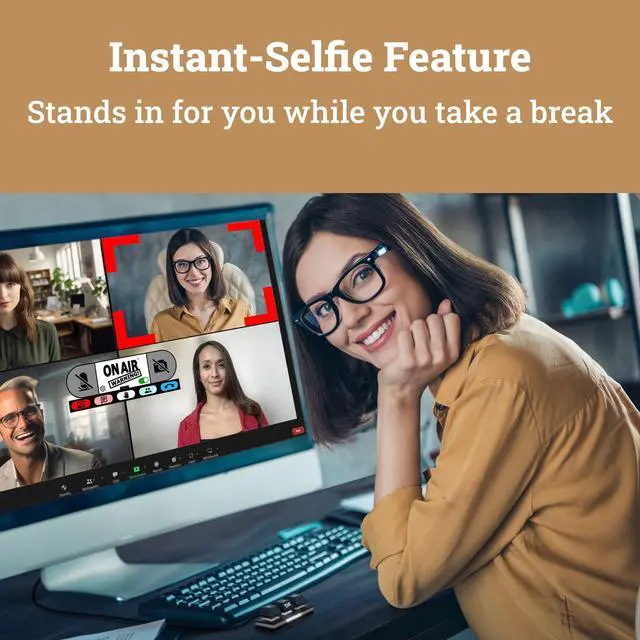 APPEAR PRESENT WITH INSTANT-SELFIE: When you need to take a break, but cant announce it, turn your video mute into an Instant-Selfie to sit in for you. Its like being in two places at one time. Your frozen video image appears on-screen while you catch a quick break. And, when youre done, its back to business with a touch, tap or click.
