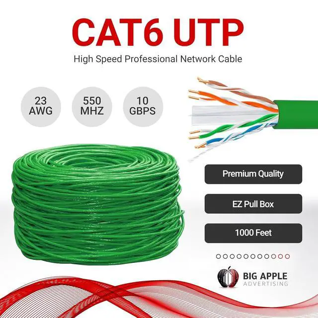 Package Include: 1000 Feet Cat 6 Ethernet Cable is a CMR UTP Bulk Wire, 550 MHz Green