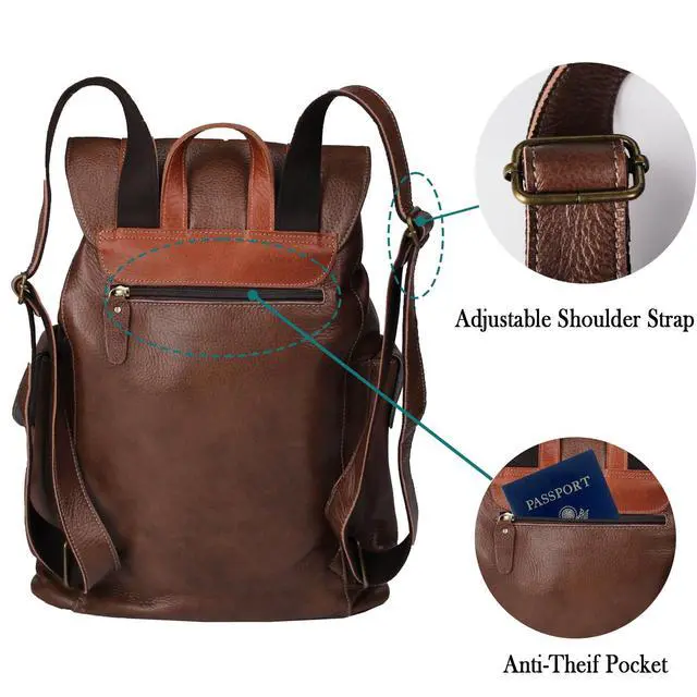 Security & Comfort: Hidden rear anti-theft pocket safeguards valuables. Sturdy padded straps distribute weight evenly despite its substantial 3.5 lb build (a hallmark of quality leather).