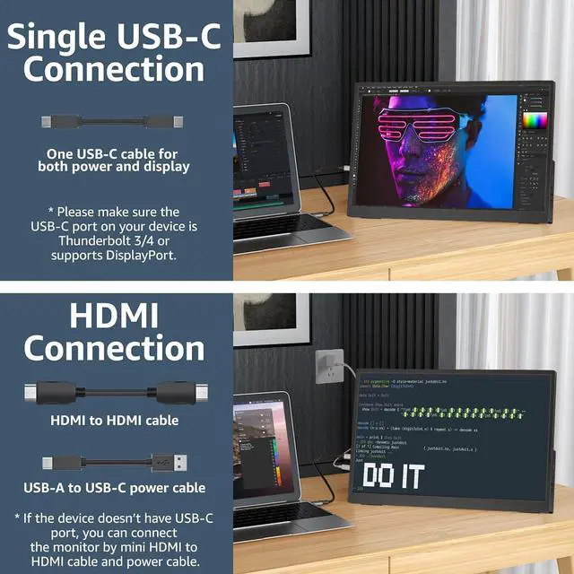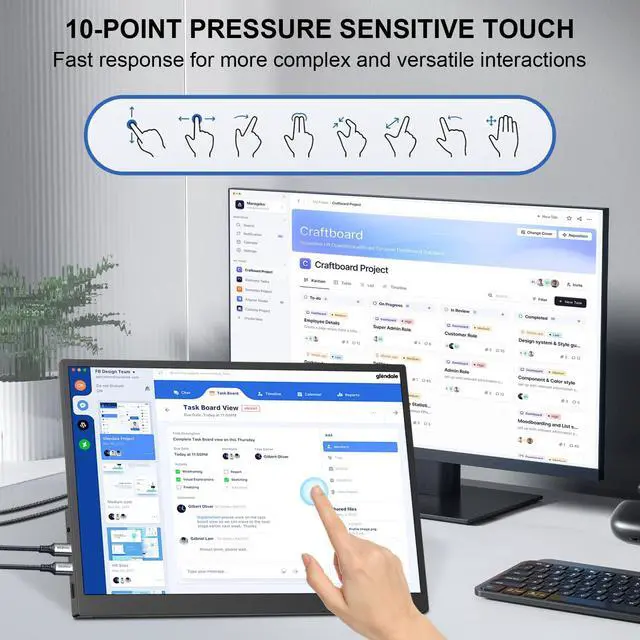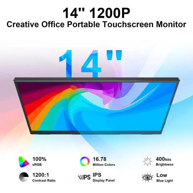 Turn Your Devices into Touch DevicesThis 14-inch portable monitor supports responsive 10-point capacitive touch and works with both Windows and macOS. Simply connect through a full-function USB-C port to enjoy power, video, and touch with a single cable. For devices with USB-C 3.1 DP Alt Mode or Thunderbolt 3/4, use USB-C to USB-C; for others, use HDMI + USB-A to USB-C + power cable. No additional drivers required. ^^ 1200P IPS Touch DisplayPortable monitor featuring a 19201200P resolution and IPS panel, this touchscreen portable monitor delivers vivid colors, sharp details, and a wide 178 viewing angle.