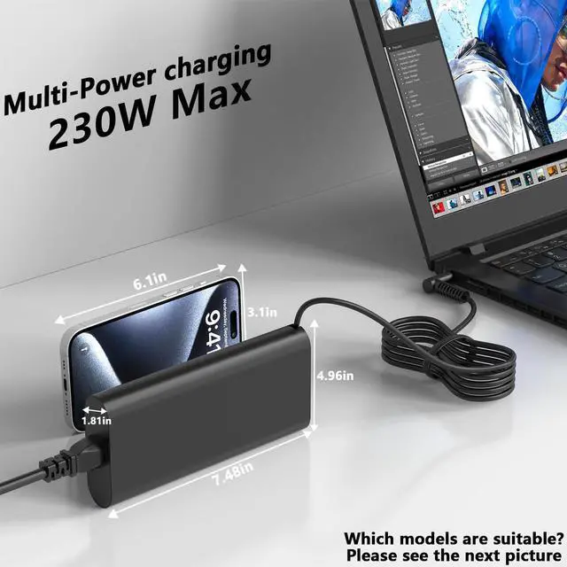 Safety: this 230W laptop charger includes multi-protection: over-charge, over-voltage, over-temperature, over-current, short-circuit, and lightning protection. Built with high-quality materials, it ensures safe and reliable charging for your devices. ^^ Back-to-School Essential The ideal choice for students, teachers, and parents, this 230W laptop charger keeps your devices running efficiently during the back-to-school season. Stay productive and connected with this reliable and durable adapter.