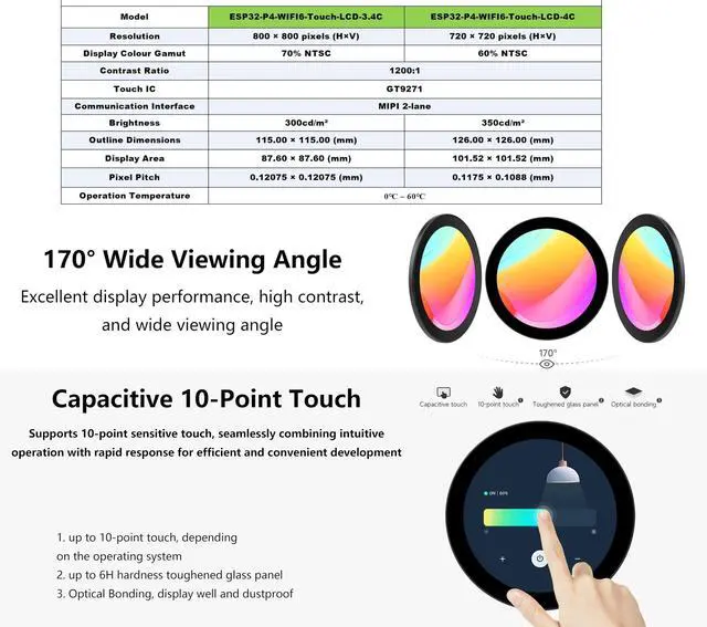 ^^ Round Touch Display: 4inch 720 x 720 IPS Round Touch Display, 170 wide viewing angle, high contrast. Supports 10-point sensitive touch, seamlessly combining intuitive operation with rapid response for efficient and convenient development. ^^ Powerful image and voice processing capability: Provides image and voice processing interfaces including JPEG Codec, Pixel Processing Accelerator, Image Signal Processor, H264 encoder. ^^