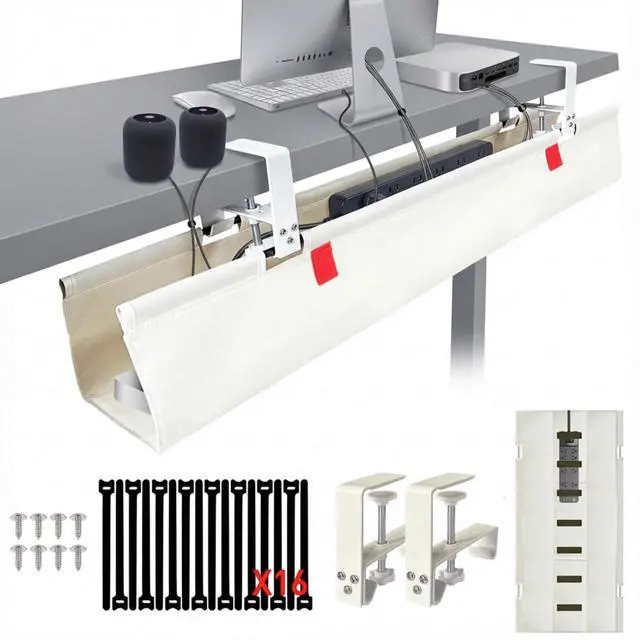 cable management tray, Simply wipe clean for long-lasting cable organization. ^^ 16 Heavy-Duty Cable Ties + 7 Built-In Straps desk cable management, More ties, less mess! Includes 16 reusable straps + 7 fixed straps inside to secure even the thickest cables and power strips. ^^ 900D Fireproof Oxford Fabric + Reinforced Stitching cable management, Rip-proof, waterproof & flame-resistant for superior durability. cord organizer, Fully bound edges prevent frayingengineered to last. ^^ 3-Year Warranty Built to Last cable management tray, We engineer every detailfrom scratch-proof clamps to Rip-proof-grade fabricbecause your satisfaction is our signature.