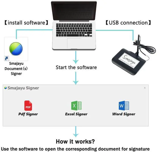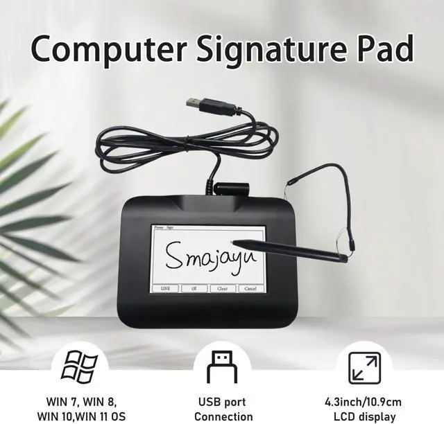 ^^ Signature tool 2: Second sign tool named demo tool which is for getting signature picture to past on excel, word. edited files. ^^ Signature tool 3: 430 S SDK is available to integrate with programmable flatform, like website, app. Contact SMAJAYU support team for support. ^^ Apply Windows OSSMAJAYU Signature pad and Signer tool only compatible with Windows OS, Windows 7, 8, 10, 11, dont support apple PC. ^^ How to sign documentsInstall SMAJAYU document (s) Signer on computer, run this app and create certification for first installation which for signature encryption and safety. Then insert Signature pad by USB and open files to start sign. ^^ DOWNLOADSMAJAYU document (s) Signer is available to be downloaded from DROPBOX. Downloading link is available in user manual under product guides and documents on this page. "Signature Pad Operation Video" is also available. ^^ About 430SSMAJAYU Signature pad is for get digital signature, USB port connection, 4.3 inch LCD display with backlit. SMAJAYU Signature pad 430S is not compatible with any other brand signature tool.