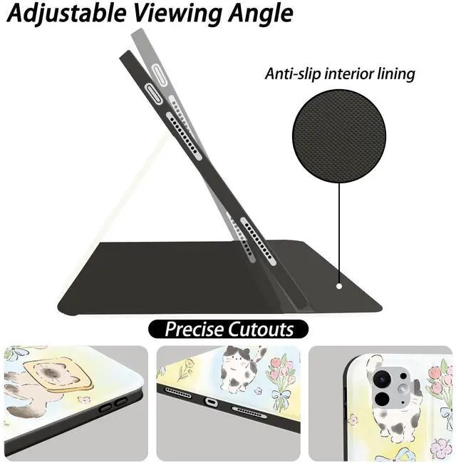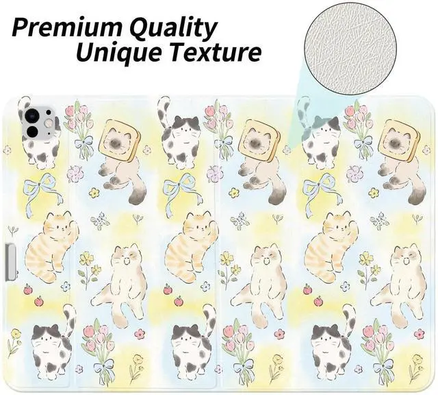 Inch: This foldable case with cute floral cat printed is designed for iPad Pro 13" M4 2024 7th