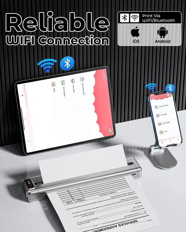 Wireless Printer]: Itari inkless printer supports Bluetooth, WIFI and USB connection to meet your daily demand; This small printer wireless is compatible with your smartphones or tablets including iOS and Android devices, print wirelessly at anytime anywhere; For remote printing, please make sure you have a stable 2.4GHZ internet wifi router for the printer keep its connectivity; If you would like to print via Mac or ChromeOS systems, please connect with USB attached, installation in one minute without any complex process; (Note: Please do not use charger with output voltage above 5V) ^^ [Portable Printers Wireless for Travel with