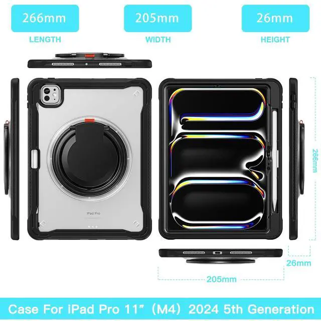 ^^ Shock-Absorbing Corner Design: Featuring slightly raised corners, this case provides enhanced protection against drops and impacts, effectively shielding your iPad Pro from accidental bumps and collisions. ^^ 360 Rotating