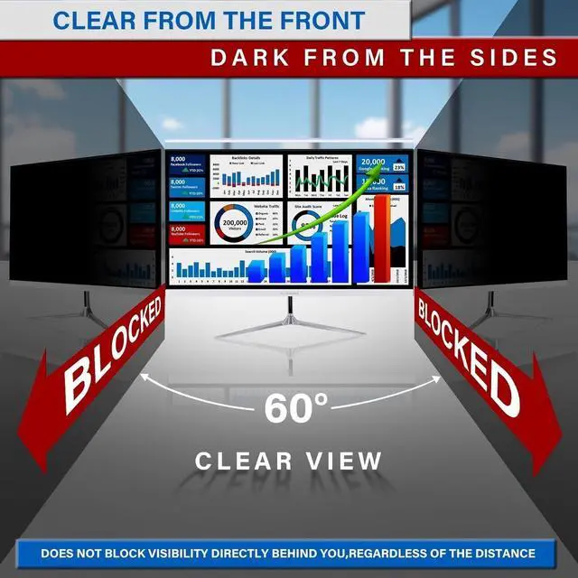 It doesn't take a professional hacker to break into your computer and steal your data. Sometimes while you're working away there may be a criminal lurking around watching and waiting for a chance to steal login, password and other valuable data. Even in the workplace you may have sensitive information visible on your computer screen that you want to keep to yourself. premium quality computer privacy filter blacks out the view from side angles (outside 60 degrees) while leaving the user's frontal view crystal clear. Only those looking right over your shoulder will see what you see.
