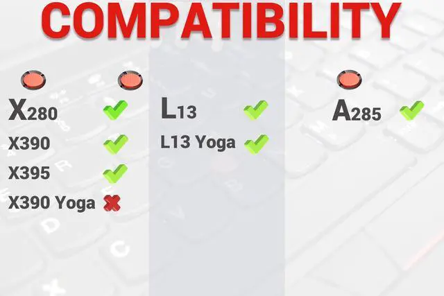 KeyboardCompatible Models: For X280 (Type 20KF, 20KE)For X390 (Type 20Q0, 20Q120SC, 20SD)For X395 (Type 20NL20NMFor L13 (type 20R3, 20R4)For L13 Yoga (type 20R5, 20R6)For A285 (Type 20MW, 20MX)Compatible
