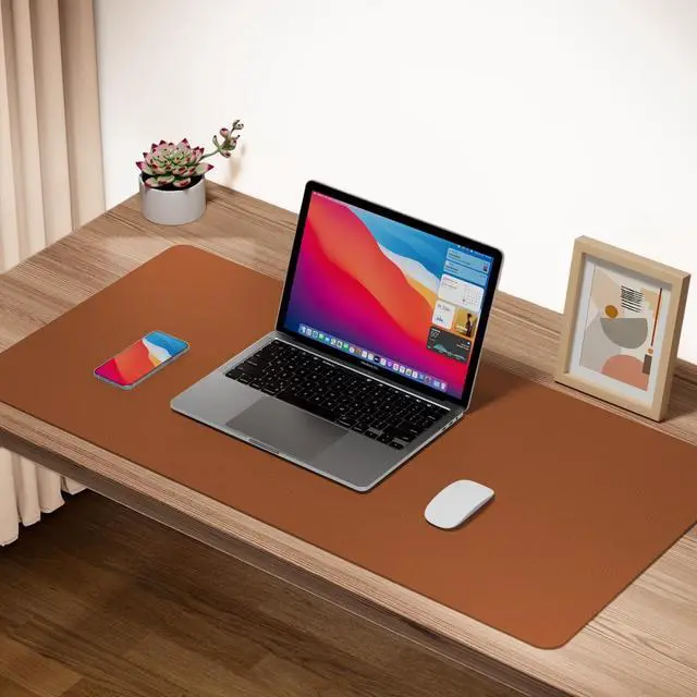 • PU leather MaterialThis desk mat is an ideal option to protect your desk from scratches, stains, spills, heat and abrasion.The smooth surface lets you enjoy writing, typing and browsing.The long service life PU leather will not be worn or scattered.