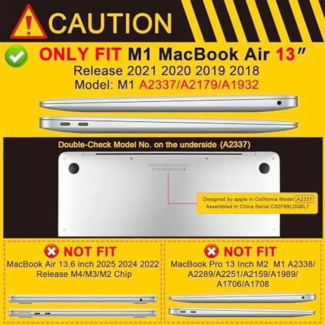 STOP: Engineered EXCLUSIVELY for MacBook Air 13" 2020 2019 2018 release (model number: A2337A2179/A1932). Do not force onto other models.