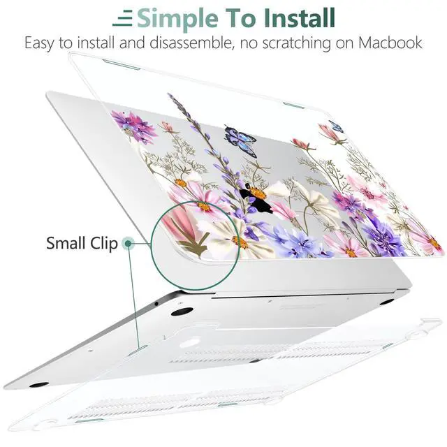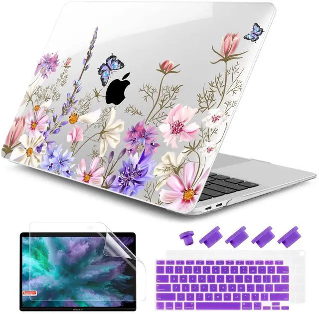 DONGKE Compatible with MacBook Air 13 inch Case 2021 2020 2019 2018 Release A2337 M1 A2179 A1932 with Retina Display & Touch ID, Plastic Hard Shell & Keyboard Cover - Butterfly Florals