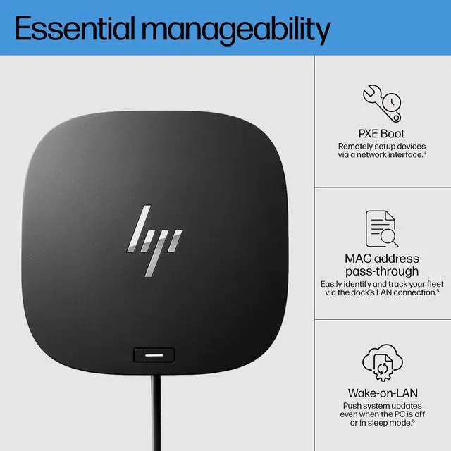 Power button to turn on or wake the system, Wake-on LAN from warm and cold dock, Wake-on LAN from S4/S5, and MAC Address Pass-Through in S0, S3, S4, S5 warm and cold dock features only function on HP or HP-supported notebooks. HP does not provide Ethernet and audio drivers on Mac PCs. (2) Based on HP internal testing on select non-HP notebook models compatible with USB-C industry standards. Certain Alt mode features are not supported, such as power button, MAC Address Pass-Through, Wake-on LAN, and OOB Wake on LAN.