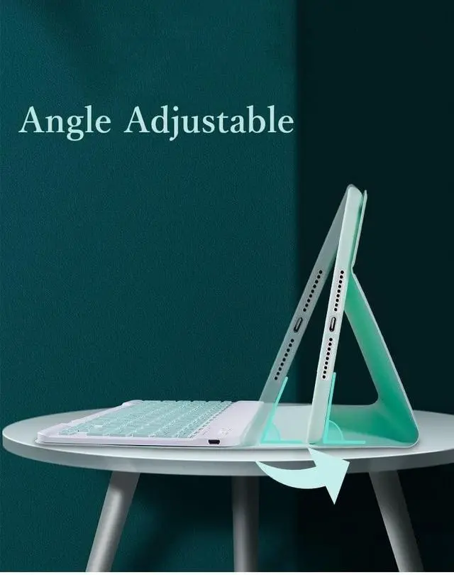 Multiple Viewing Angles & Removeable Magnetic Color Keyboard Bulit-in Rechargeable Keyboard . Cute Color keys, The magnetic wireless keyboard is removable .You can connect this Blu