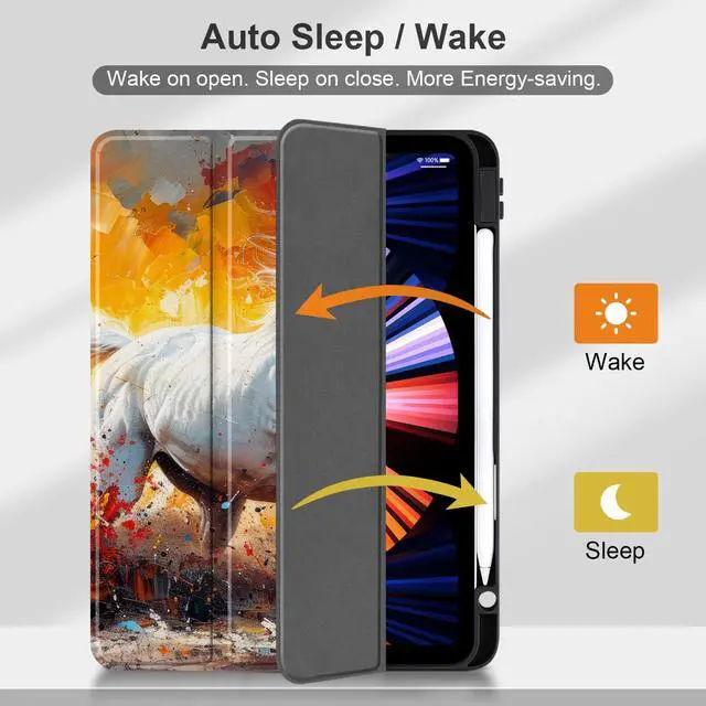 Sleep Functionality: Seamlessly wake up your iPad Pro by simply flipping open the cover, and effortlessly put it to sleep by closing the cover, ensuring convenience and conserving battery life ^^