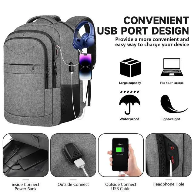 USB PORT DESIGN: Lapsouno School Laptop backpack provides convenient portable power supply, and School computer backpack is a USB charging port externally, which is very suitable for your mobile phone or other electronic devices. (Please note that the USB port does not include charging lines, you need yourself). As a School backpack for men / School backpack for women / travel backpack / carry on backpack.