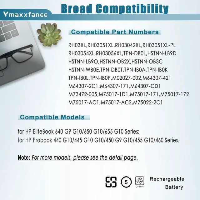 Condition: 100% brand New from Manufacturer. ^^ RH03XL Laptop battery Compatible laptop Models for HP EliteBook 640 G9 G10/650 G10/655 G10 Series; HP Probook 440 G10/445 G10 G10/450 G9 G10/455 G10/460 Series. ^^ RH03XL battery Compatible Part NumberRH03XL, RH03051XL, RH03042XL, RH03051XL-PL, RH03054XL, RH03056XL, TPN-DB0L, HSTNN-LB9D, HSTNN-LB9O, HSTNN-OB2X, HSTNN-OB3C, HSTNN-WB0E, TPN-DB0T, TPN-IB0A, TPN-IB0K, TPN-IB0L, TPN-IB0P, M02027-002, M64307-421, M64307-2C1, M64307-171, M64307-CD1, M73472-005, M75017-1D1, M75017-171, M75017-172, M75017-AC1, M75017-AC2, M75022-2C1. ^^ Quality &