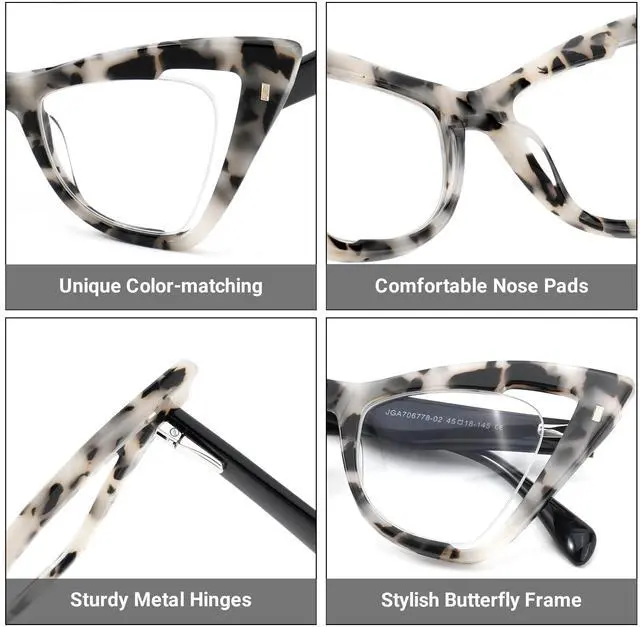 [FASHION STYLE] Butterfly frame design, with leopard print more feminine elegance. ^^ [PROTECTION FOR YOUR EYES] -Alleviates visual fatigue and discomfort from long periods of surfing the Internet, gaming and watching with blue light blocking lens ^^ [QUALITY MATERIAL] The frame is made of Acetate, durable, beautifully made.
