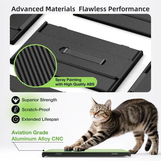 The laptop monitor extender supports extended, mirrored, duplicate, portrait, and landscape modes. It can perform multiple tasks at the same time, greatly improving efficiency (up to 300%), and is a rare productivity tool. The portable laptop monitor is perfectly used by office worker, stock trader, programmer, musician, entrepreneur, engineer, blogger, writer, student, etc. ^^ Upgraded Latest DesignThe laptop screen extender monitor portable features a completely new design in every detail, including the use of aviation-grade aluminum alloy for the screen back cover, which provides heat dissipation, scratch resistance, and a longer lifespan.