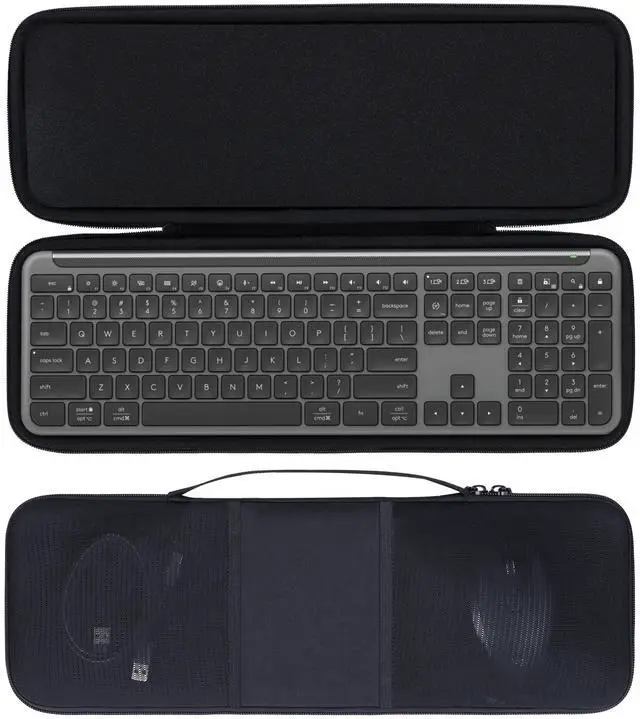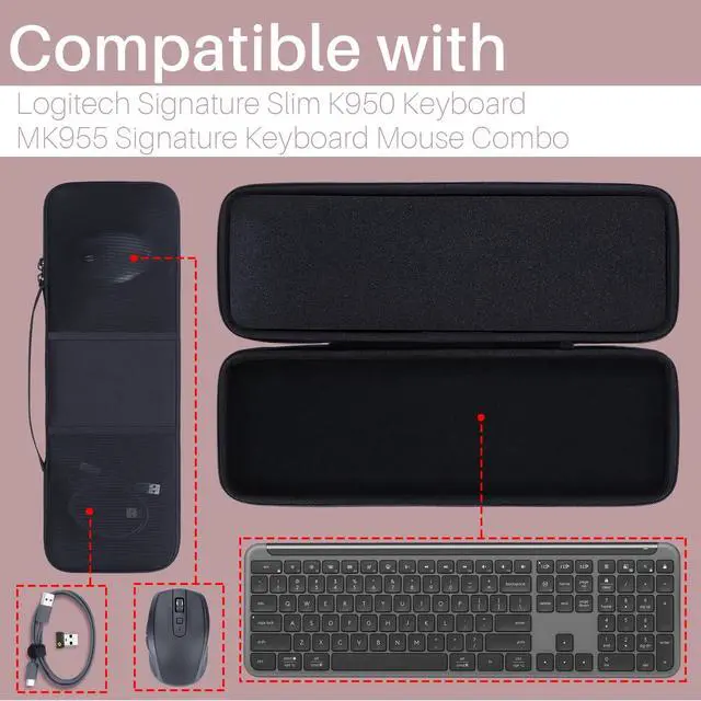 This Lebakort hard protective case is meticulously designed and manufactured specifically for the Logitech MK955 Signature slim keyboard and mouse combo. This case is compatible with the Logitech MK955 Signature slim keyboard and mouse combo, the Logitech Signature slim K950 keyboard, and the Logitech Signature M650 L full-size mouse. It is tailored to their shape and size, preventing damage during transportation. ^^ Crafted from nylon and hard EVA, this protective case safeguards your Logitech MK955 Signature slim keyboard and mouse combo, Logitech Signature slim K950 keyboard, and Logitech Signature M650 L full-size mouse against crushing, bumps, scratches, and water damage.