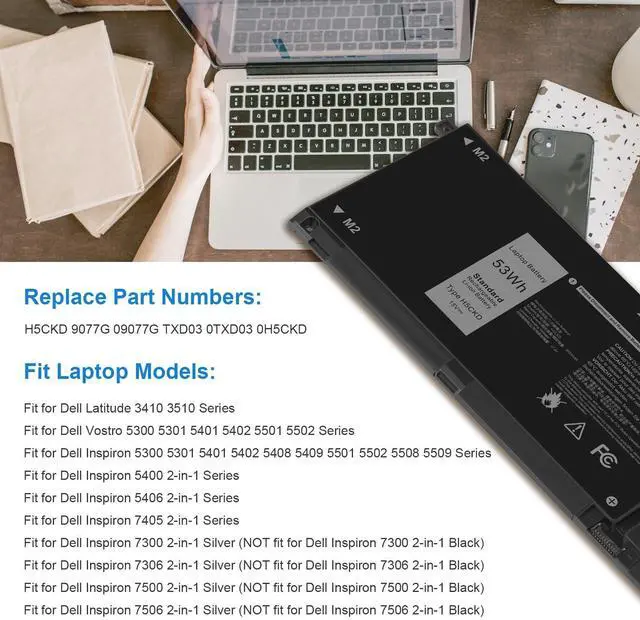 Color: Black ^^ Replacment Part NumberH5CKD 07T8CD 7T8CD 0TXD03 TXD03 09077G 9077G Repalcment battery for Dell P129G P129G001 P129G002 P101F P101F001 P102F P102F002 P126G P126G002 P126G004 P130G Series. ^^ Compatible the Modelsfor Dell Latitude 3410 3510 Vostro 5300 5301 5401 5402 5501 5502 5300 5301 5401 5402 5408 5409 5501 5502 5508 5509 5400 5406 7405 7300 7306 7500 7306 7405 7506 2-in-1 Silver Series Notebook. (NOT fit for 7300 2-in-1 Black, 7306 2-in-1 Black, 7500 2-in-1 Black, 7506 2-in-1 Black) ^^ Compatible the Modelsfor Dell Latitude 3410 3510 Series, Vostro 5300 5301 5401 5402 5501 5502 Series, Inspiron 5300 5301 5401 5402 5408 5409 5501 5502 5508 5509 Series, Inspiron 5400 5406 7405 2-in-1 Series, Inspiron 7300 2-in-1 Silver, Inspiron 7306 2-in-1 Silver, Inspiron 7500 2-in-1 Silver, Inspiron 7506 2-in-1 Silver Series Laptop; (NOT fit 7300 7306 7500 7506 2-in-1 Black series. )