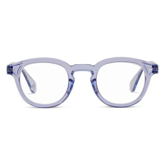 DescriptionCalling all trendsetters. Asher's round, chunky frames are available in bold colors, creating a look as inspired and unique as you are. When the light catches the translucent blue, green, and brown frames, you'll see exactly what we mean. Embrace your daring, distinctive side with Asher. * Scratch-resistant coating* UV400 Protection that blocks 99.9 % of UVA/UVB raysWith so many of us spending long hours on our computers and devices, our blue light glasses have become especially important. Our lenses feature UV protection, anti-glare protection, and are scratch-resistant while also filtering high-energy visible blue light.