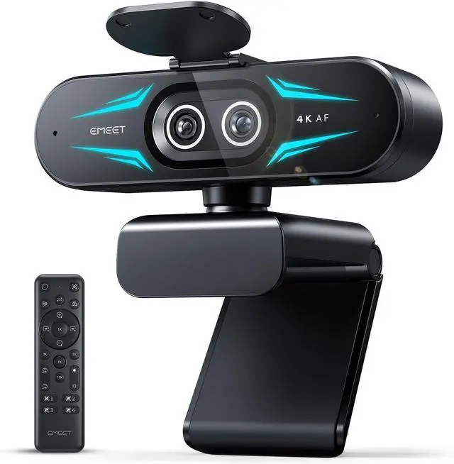 PDAF autofocus keeps every zoom stable, clear, and fast. With remote or EMEET STUDIO control, the web cam enables flexible framing without moving the camera. Zoom not supported in 4K, 60FPS, or YUY2 modes. The integrated system saves time, space, and setup effort for a more efficient workflow. ^^ Smart Dual Control via Remote & EMEET STUDIO C60E DUAL live streaming camera delivers a comprehensive image control experience, letting you manage every detail with ease. Remote control allows quick, real-timadjustments such as zoom and color without interrupting your stream, while EMEET STUDIO enables precise fine-tuning of brightness, focus, and RGB lighting.
