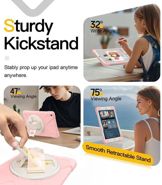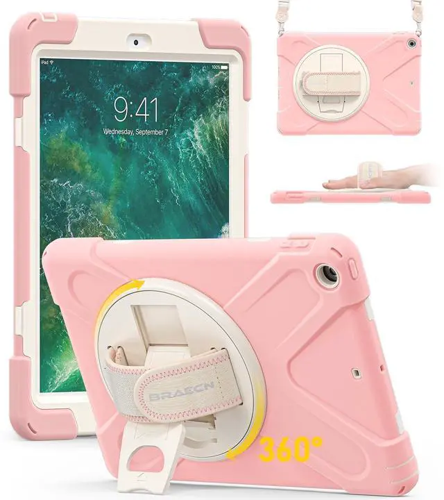^^ 360 Rotating Kickstand: BRAECN iPad case with stand offers multiple standing positions, ensuring sturdy and stable support in all directions. 360 flexible rotation for easy use when youre using this 5th/6th generation iPad case. It provides excellent backing and frees your hands when you need a steady viewing angle for work or study. ^^ Adjustable Shoulder and