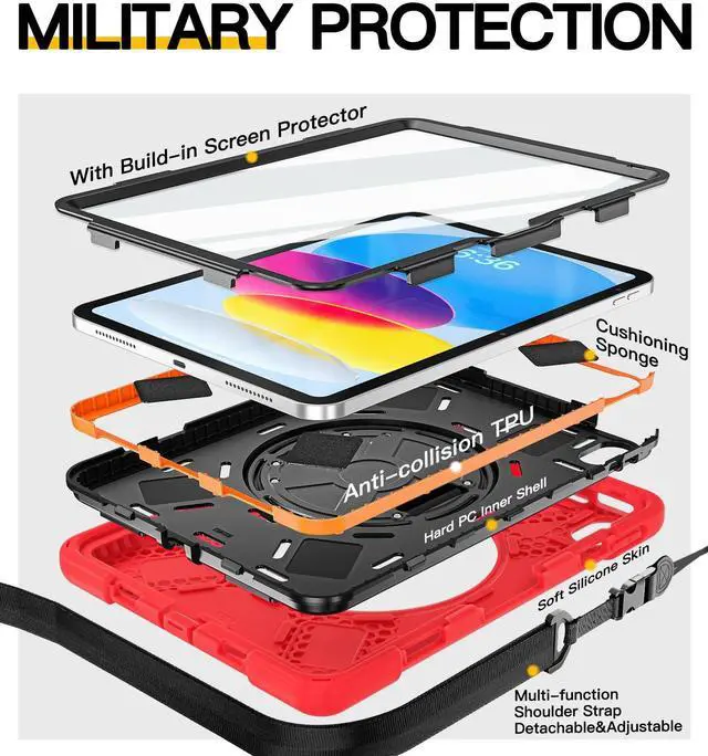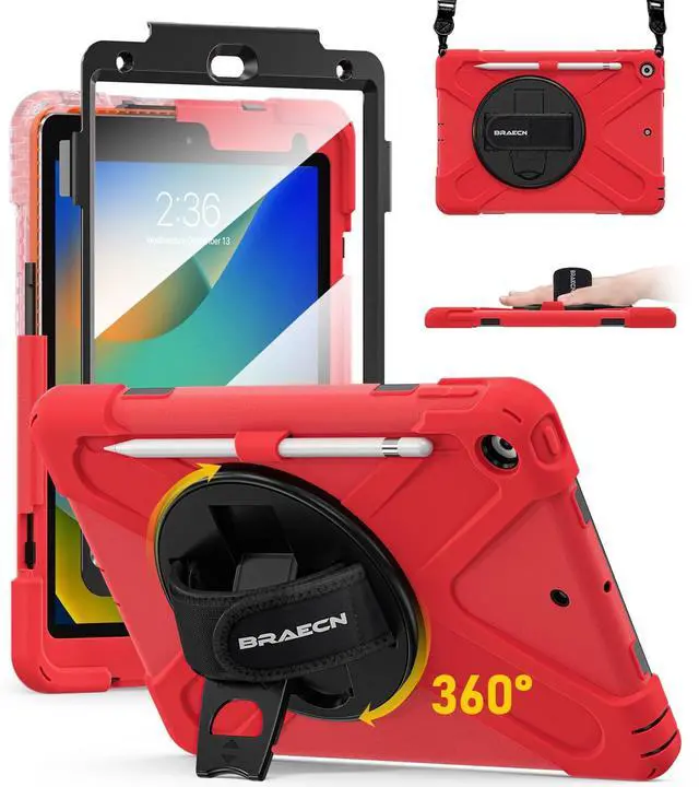 Inch 2019 [MODEL: A2197/A2198/A2199/A2200], WILL NOT FIT ANY OTHER MODEL. Pencil Cap Holder is included, but Apple Pencil and Pencil Cap is not included. ^^ Full Body Protection Three layer structure design with built-in transparent screen protector provides a full around protection against scratch, impacts and shock during daily use. Built-in Apple Pencil Holder and Apple Pencil Cap Holder offer a safe way to store your iPad Pencil while using our case. ^^ 360 Swiveling Stand & Hand Strap Located on the back of iPad 9th/8th generation 10.2 Inch shockproof case 2021/2020, built-in 360 degree rotating kickstand and adjustable handle hand strap provides a more flexible and convenient way to use your tablet during work, study or journey, ideal for students, teachers, engineers, cashiers and waiters, etc. ^^ Adjustable & Detachable Carrying Strap Portable Shoulder Strap allows to carry your iPad in landscape/portrait mode securely in outdoors or hang your iPad in kitchen, bedroom, car seat for convenient usage. ^^ Customer Service Our Professional Service Team will solve your problems to ensure your complete satisfaction within 24 hours. Just SEND EMAIL to contact us if you meet any problem such as replacement, refund, strap, installation guide.