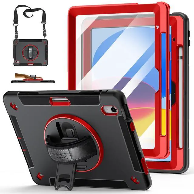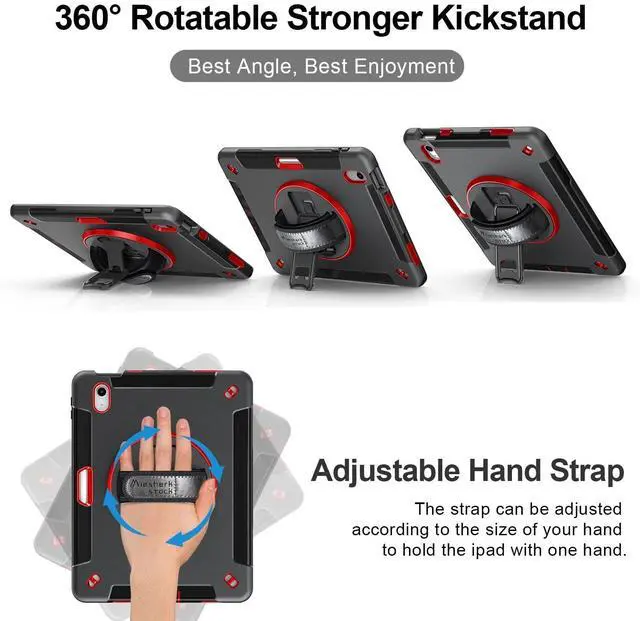 Rotating/Multi-Angle Stand: 360-degree swivel sturdy kickstand that supports multi-angle (Vertical, Horizontal, Halfway between). Case for iPad 10th Generation/11 th Generation can be used to support your iPad while watching a movie, playing games, or typing, let your hands-free. This sturdy kickstand can be folded when you don't need it ^^ Adjustable Hand Strap +