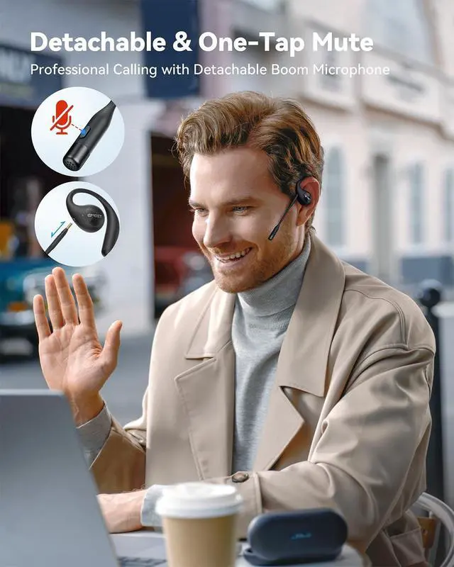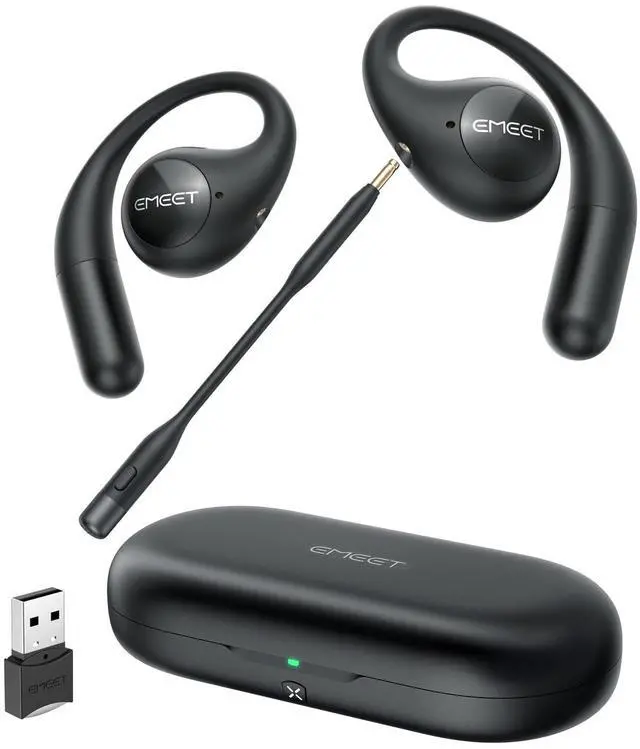 Open-Ear Design: The EMEET AirFlow open-ear headphones utilize advanced air conduction technology, meticulously crafted based on the analysis of 2, 560 ear shapes. Inspired by the golden spiral and ergonomically designed with ultra-soft silicone pads, they offer an unparalleled comfortable listening experience. ^^ Professional Calling with Detachable Boom Microphones & Mute Function: Equipped with the cutting-edge VoiceCore algorithm, the headsets reduce dual-channel noise for professional-grade call clarity. Plus, a convenient one-click mute feature ensures your privacy is safeguarded at all times.