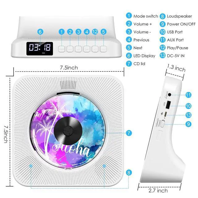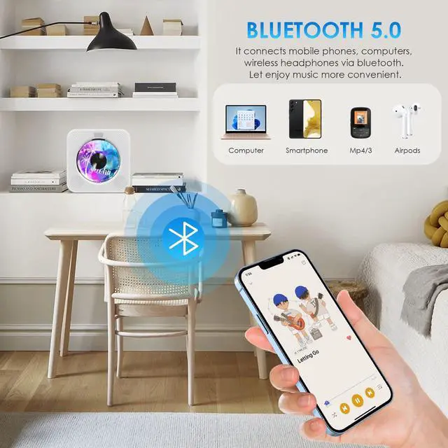 HiFi Sound: Built-in stereo dual HI-FI speakers are designed and adjust the volume as needed. Gueray cd players can be connected to Bluetooth-enabled devices such as mobile phones or tablets. Plug the USB charger into the wall and connect the USB cable to the CD player, so that you can enjoy the joy of music at home the whole day as the HiFi sound is Stereo enough to fill your room ^^