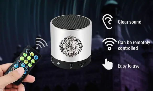 Portable Digital Quran Speaker with Remote Control over18 Reciters and 15 Translations Available, Perfect Gift for Family, Friends, and ColleaguesDigital Quran Speaker has exquisite design, portable and nice, you can carry digital Quran Speaker in anywhereDigital Quran Speaker use the remote control to control and enjoy listening complete Qur'an to reciteDigital Quran Speaker includes 18 Famous Different Imams and 15 Translations, you can choose what you need. Digital Quran speakers can help you learn the Quran more easily and enjoy the pleasure of listening.