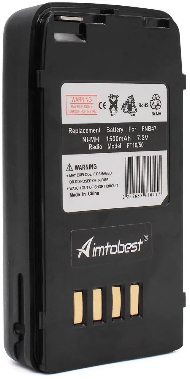 Replacement Battery for FNB41 FNB42 FNB47 FNB47H FNB-V49 FNB-V49H. ^^ 1500mAh 7.2V Ni-MH Battery Compatible for Yaesu Vertex Two Way Radio. ^^ Comapatible with FT-10 FT-10R FT-40 FT-40R FT-50 FT-50R VXA-100 VX-10V VX-10U. ^^ Please confirm the compatible model and battery part number carefully before purchasing. ^^ All products are replacement part with our own brand Aimtobest. The mention of other brand name or specific model is solely intended to illustrate compatibility.