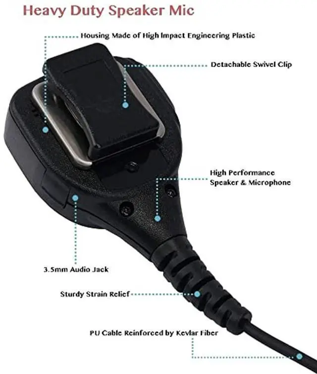Heavy Duty Remote Speaker mic/Microphone with Reinforced Cable, Noise Reduction Mic, 3.5 mm Audio Jack and Detachable Swivel ClipPackage Include1*Heavy Duty Remote Speaker mic/Microphone with Reinforced Cable1* 3.5 mm